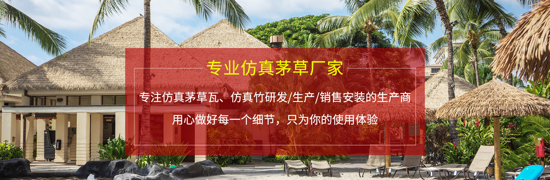 廈門華麗龍塑膠工貿有限公司坐落于美麗的濱海城市廈門,公司占地面積6000平方米,是一家專業生產、制造、研發、銷售仿茅草瓦/塑料茅草/仿真竹子,竹片/仿真竹席/防火茅草等生產商。 仿真茅草瓦,仿真竹竿,仿真竹板壽命高達20年以上不生蟲,不腐爛,不褪色變色,抗風,抗壓,抗老化,夏天不變軟冬天不變硬等優點。目前公司產品主要應用于園林景觀,度假村工程,生態農莊,農家樂,休閑風光等場所,公司堅持以自然美觀與耐久性能為設計研制導向。并不斷強化建設專業的安裝與技術保障團隊,始終堅定擔當茅草瓦行業的優質品牌!